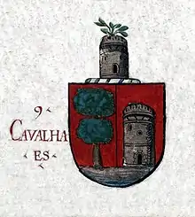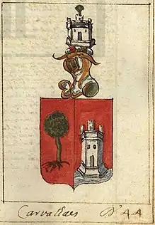 No Brasão de armas da família Carvalhal alguns emblemas podem ser identificados, como as cores azul, emblema da fidelidade e vermelho, emblema da coragem e as figuras carvalho, emblema da força e da torre, emblema da fortaleza.