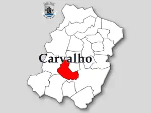 A 11 km da sede do Município ficava a Freguesia de Carvalho constituída entre outros pelos seguintes lugares: Assento, Cabreira, Campo, Carvalho, Castelo, Casais, Covas, Feira, Lamas, Matinho, Outeiro, Pousada, Robalde e Silvares. A sede de freguesia é no lugar de Carvalho onde se situa a igreja, escola primária e a sede da Junta de Freguesia.