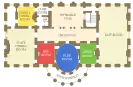 A Casa Branca foi um dos primeiros edifícios governamentais de Washington acessível a cadeiras de rodas, com modificações efectuadas durante a presidência de Franklin D. Roosevelt, que necessitou de usar cadeira de rodas como resultado da sua paraplegia. Durante a administração de Richard Nixon, a primeira-dama Pat Nixon remobilou a Sala Verde, a Sala Azul e a Sala Vermelha, trabalhando com Clement Conger, o curador que eles nomearam.