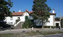 Casa da Coutada, com seu jardim, portão e largo fronteiro, com frondosas árvores e verduras