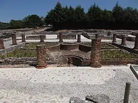 A utilização da cruz suástica nos mosaicos deve-se aos romanos considerarem esse símbolo como uma representação solar, propiciadora de boa sorte. A casa foi escavada nos anos 40 e os mosaicos restaurados nos anos 50 do século XX.
