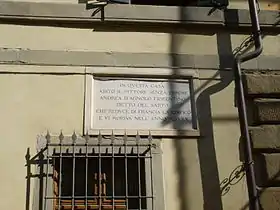 A casa, que está assinalada por uma placa na Via Giusti (onde se cita Vasari, que chamava a Andrea "o pintor sem erros"), tem as janelas emolduradas em pietra serena e, por outro lado, é caracterizada por uma coluna no mesmo material encaixada na esquina entre as duas ruas, encimada por um pequeno brasão dos Zuccari e um grande brasão dos Médici.