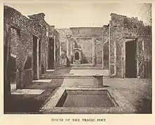 As escavações revelaram as ruínas do que viria a ser chamado "Casa do Poeta Trágico" em 1824. Sua redescoberta gerou euforia, não por sua grandeza ou pela descoberta de mais uma parte do sítio arqueológico, mas pela riqueza e beleza dos detalhes presentes na ornamentação de um único local, ainda se tratando de uma estrutura que não possui grande dimensão espacial.[3] Suas pinturas atraíram grande atenção, tendo algumas sido extraídas de Pompeia e levadas para o Museu Arqueológico Nacional, localizado em Nápoles.[4] As pinturas restantes permaneceram na casa, sofrendo o efeito dos elementos climáticos, o que resultou no desgaste das imagens e esquecimento da perspectiva original que se tinha do ambiente.[5]