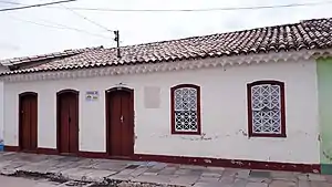 A construção é dividida em duas áreas, uma para uso comercial e a outra para uso residencial. Possui três portas e duas janelas, com cercaduras de madeira. Destaca-se a caixilharia em guilhotina das janelas. O acesso principal liga-se a um corredor central que distingue as duas áreas da casa e o pátio ao fundo.[1][2]