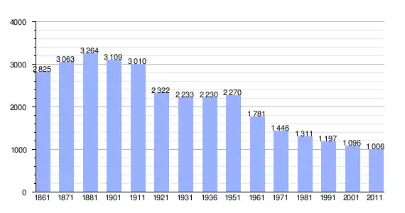 | Variação demográfica do município entre 1861 e 2011[3] |