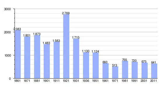 | Variação demográfica do município entre 1861 e 2011[3] |