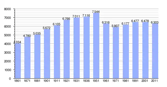| Variação demográfica do município entre 1861 e 2011[3] |