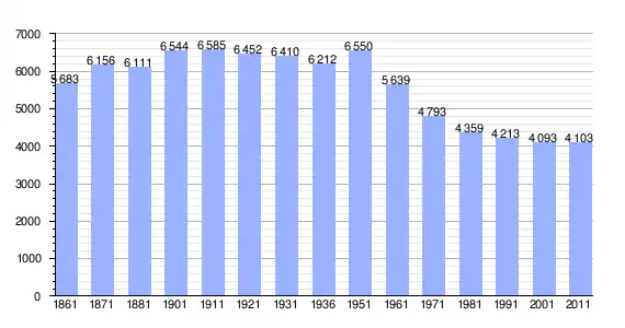 | Variação demográfica do município entre 1861 e 2011[3] |
