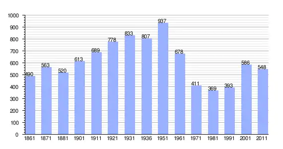 | Variação demográfica do município entre 1861 e 2011[3] |