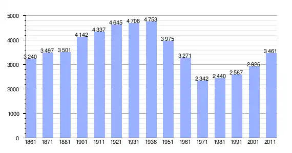 | Variação demográfica do município entre 1861 e 2011[3] |