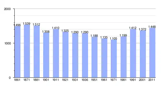 | Variação demográfica do município entre 1861 e 2011[3] |