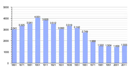| Variação demográfica do município entre 1861 e 2011[3] |