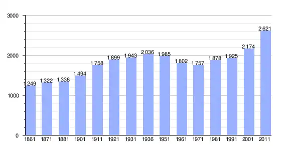 | Variação demográfica do município entre 1861 e 2011[3] |