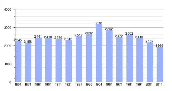 | Variação demográfica do município entre 1861 e 2011[3] |