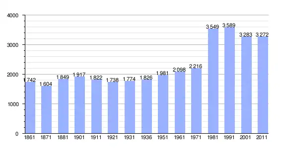 | Variação demográfica do município entre 1861 e 2011[3] |