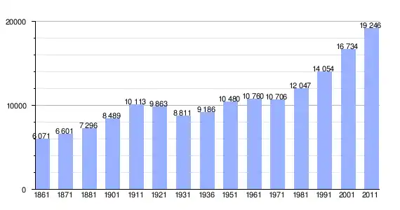 | Variação demográfica do município entre 1861 e 2011[3] |