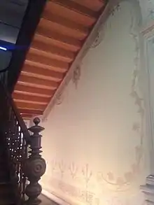 Parte interna Casarão Alameda Cleveland, escadaria vista de cima e detalhes de pintura restaurada do museu da Energia Elétrica