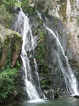 As águas que se despenham desta cascata correm por um vale muito apertado na montanha, dando assim origem a uma micropaisagem, que surge de forma repentina, dotada de vegetação abundante a cobrir o xisto.