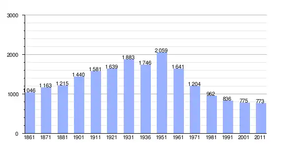 | Variação demográfica do município entre 1861 e 2011[3] |