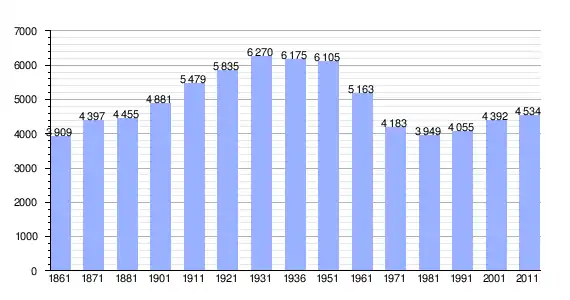 | Variação demográfica do município entre 1861 e 2011[3] |