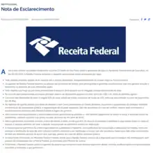 - «Nota de Esclarecimento». Receita Federal. Consultado em 9 de março de 2023