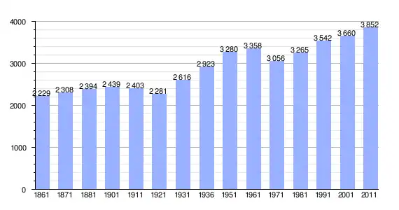 | Variação demográfica do município entre 1861 e 2011[3] |