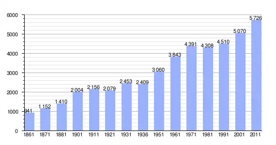 | Variação demográfica do município entre 1861 e 2011[3] |