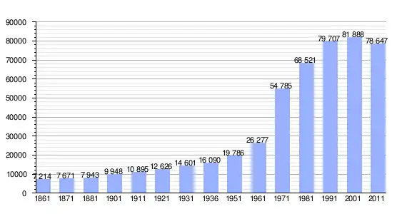 | Variação demográfica do município entre 1861 e 2011[3] |