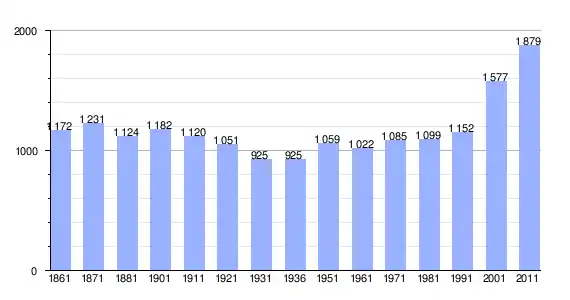 | Variação demográfica do município entre 1861 e 2011[3] |