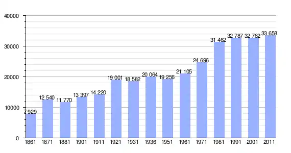 | Variação demográfica do município entre 1861 e 2011[3] |
