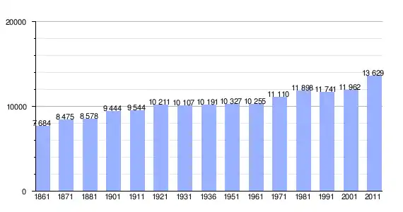 | Variação demográfica do município entre 1861 e 2011[3] |
