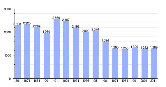 | Variação demográfica do município entre 1861 e 2011[3] |
