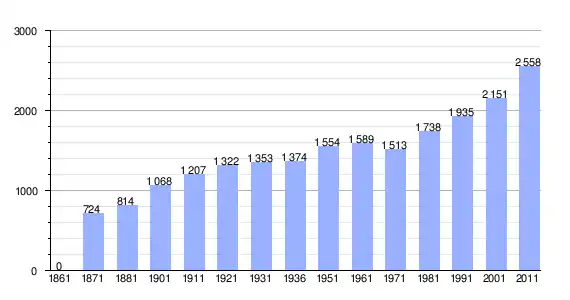 | Variação demográfica do município entre 1861 e 2011[3] |