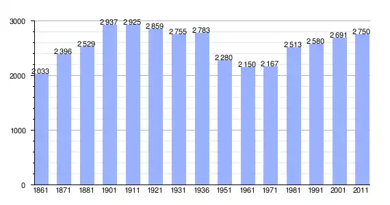 | Variação demográfica do município entre 1861 e 2011[3] |