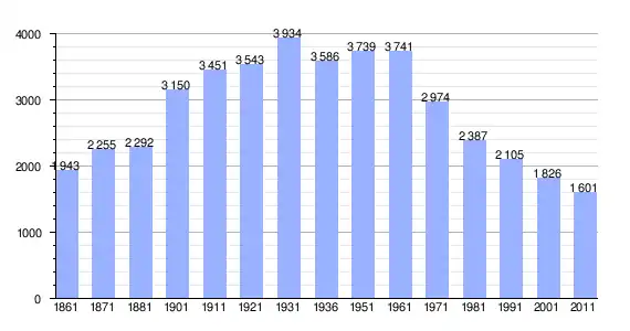 | Variação demográfica do município entre 1861 e 2011[3] |