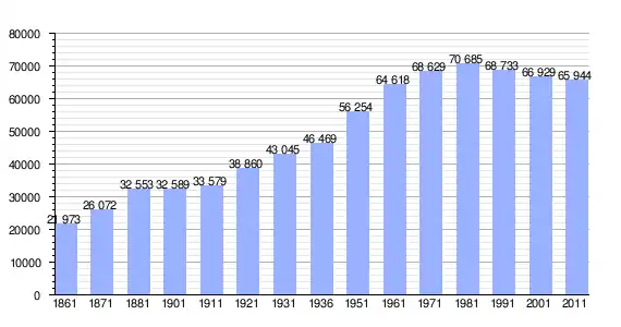 | Variação demográfica do município entre 1861 e 2011[3] |