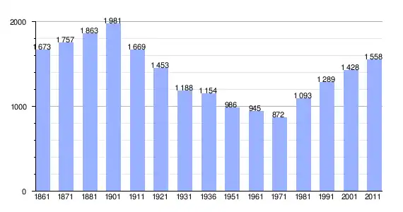 | Variação demográfica do município entre 1861 e 2011[3] |