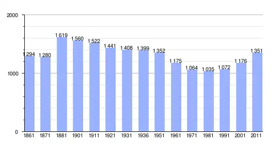 | Variação demográfica do município entre 1861 e 2011[3] |