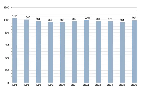 | Gráfico demográfico de Castellfollit de la Roca entre 1991 e 2005 |