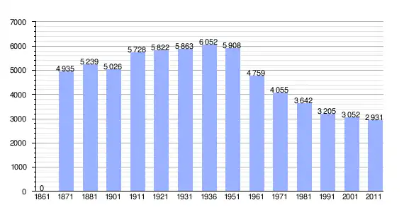| Variação demográfica do município entre 1861 e 2011[3] |