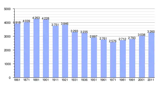 | Variação demográfica do município entre 1861 e 2011[3] |