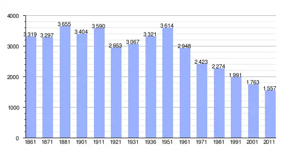 | Variação demográfica do município entre 1861 e 2011[3] |