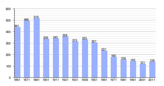 | Variação demográfica do município entre 1861 e 2011[3] |