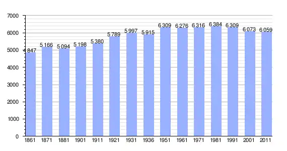 | Variação demográfica do município entre 1861 e 2011[3] |