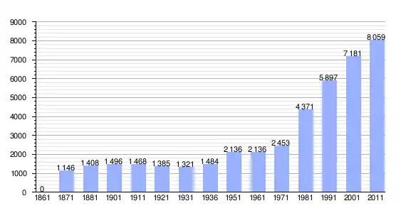 | Variação demográfica do município entre 1861 e 2011[3] |