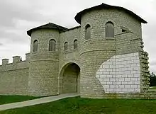 Castelo (em latim: Castellum; diminutivo de castra, o acampamento militar, referido em português como castro), na Roma Antiga, era um pequena fortaleza ou forte usado como torre de guarda ou estação de sinal ou um tanque de armazenamento de água. Diferente dos castros que serviam como base das legiões, os castelos abrigavam as tropas auxiliares, tendo capacidade para 500 até 1 000 soldados; por vezes eram usados por legiões estacionadas em suas imediações. Eles eram retangulares e possuíam muros defensivos com torres. Sua planta era cortada por duas vias, a pretória (praetoria) e a principal (principalis), que interseccionavam no centro; elas formaram os principais eixos do acampamento. No interior do acampamento, rente a muralha, havia outra via chamada intervalo (intervallum) e o complexo era circundado por uma ou mais valas secas em forma de "v". A via principal dividia o castelo em duas partes: a frontal, chamada pretentura (praetentura), e a retaguarda, chamada retentura. A via pretória, por outro lado, dividia a pretentura em duas e emergia de dentro do edifício construído no meio da retentura.[1]