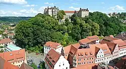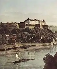 Vista de Pirna com o Schloss Sonnenstein em 1757, por Canaletto.