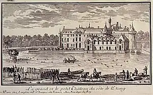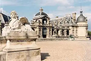 O palácio ocupa o lugar de um castelo medieval. As grandes cavalariças, construídas entre 1719 e 1740, são uma obra prima do arquitecto Jean Aubert e abrigam, actualmente, o Musée vivant du cheval (Museu vivo do cavalo). Os jardins são uma das mais notáveis criações de André Le Nôtre.