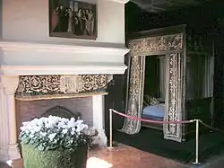 A cama com postes nos cantos data do início do século XVII e a poltrona de Henrique II está coberta com couro cordovês. Por cima da lareira encontra-se um retrato oitocentista de Catarina de Médici pintado por Sauvage.