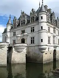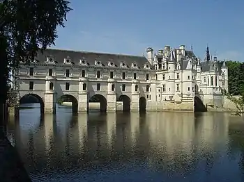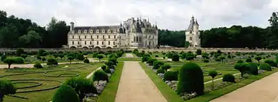 Mais tarde, o filho de Bohier foi desapropriado, sendo o château entregue ao Rei Francisco I por débitos não pagos à Coroa. Depois da morte deste monarca, em 1547, Henrique II ofereceu o palácio como presente à sua amante, Diane de Poitiers, a qual se tornou ardentemente ligada ao château e às suas vistas em conjunto com o rio. Ela haveria de mandar construir a ponte arcada, juntando o palácio à margem oposta. Supervisionou, então, a plantação de extensos jardins de flores e de vegetais, juntamente com uma variedade de árvores de fruto. Dispostos ao longo do rio, mas protegidos das inundações por terraços de pedra, os refinados jardins foram estabelecidos em quatro triângulos.